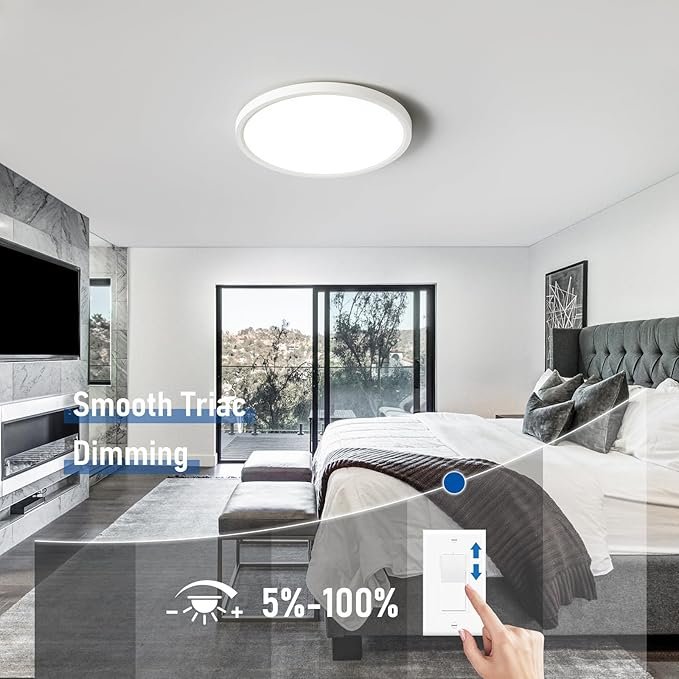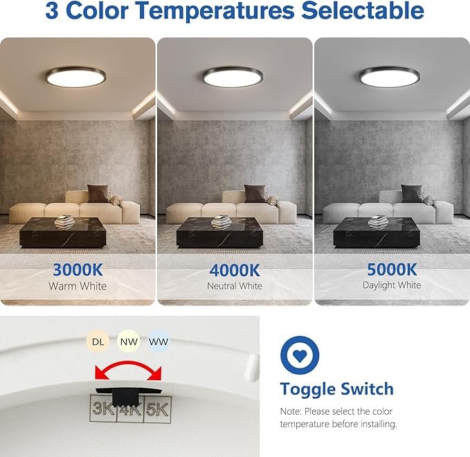 【Customizable Brightness & Color Temp for Every Mood】Adjust brightness from 5% to 100% easily via your wall switch (works with most dimmers) – perfect for bright tasks or soft ambient light. Plus, pick your ideal color temperature before installation: warm 3000K (cozy evenings), neutral 4000K (daily use), or daylight 5000K (focused work) – no extra tools required.