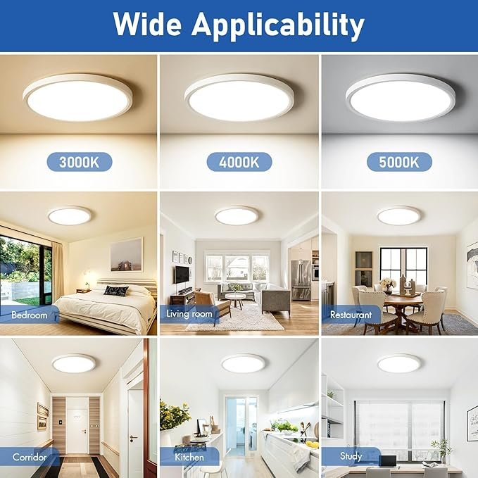 【5-Year Warranty + 50,000-Hour LED Lifespan】Backed by a 5-year replacement warranty and 24/7 customer support, you can use this LED ceiling light with full confidence for the long haul. Plus, its integrated LED design boasts a 50,000-hour lifespan—meaning years of reliable, consistent lighting without the hassle of frequent maintenance or replacements. It delivers steady performance for both residential spaces (living rooms, bedrooms, etc.) and commercial areas.