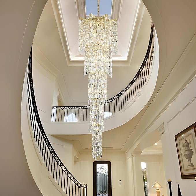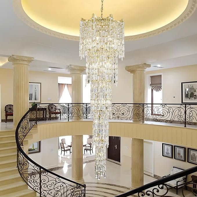 Large Foyer Chandelier – The K9 crystals of foyer chandelier are like icicles in the ice, glittering and translucent, the jagged design is even more unique, with a light champagne gold, modern and classic, can be perfectly adapted to a variety of different home styles.