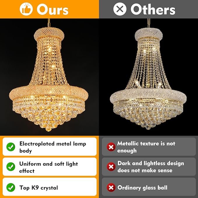 Dimmable:This luxury crystal chandeliers requires 12*E12 base bulbs (40 watts maximum power per bulb), if you use dimmable bulbs and dimmers, this entryway chandeliers is dimmable. (All bulbs and dimmers are not included)