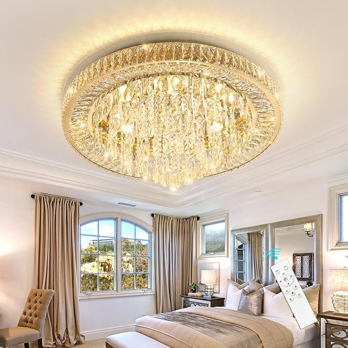 Modern Crystal Chandeliers for Living Room Ceiling Light Fixture LED Dimmable Lamp with Remote Pendant Lighting Flush Mount Ceiling Light for Dining Room Bedrooms Foyer